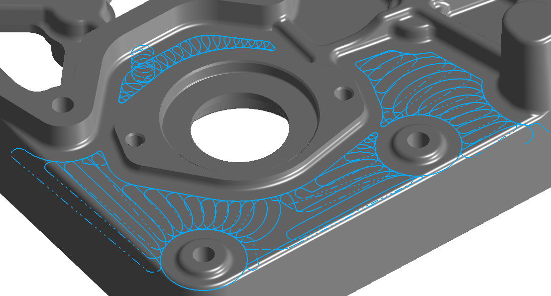 Provides toolpath modeling flexibility for when other toolpath process output won’t cut it. The resulting toolpath is gouge‑free for all supported tools, regardless of the part model topology.