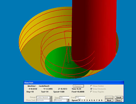 Helical Interpolation of SpiralsThe code generator machine file has been enhanced to support new code options for helical and spiral output, making it now possible to output changing radius helixes differently than constant radius. Additionally, spirals can now be interpolated using a series of constant radius helical moves based on a specified chordal deviation tolerance. This allows the user to better tailor the toolpath output to match the specific capabilities of the machine tool being used.
